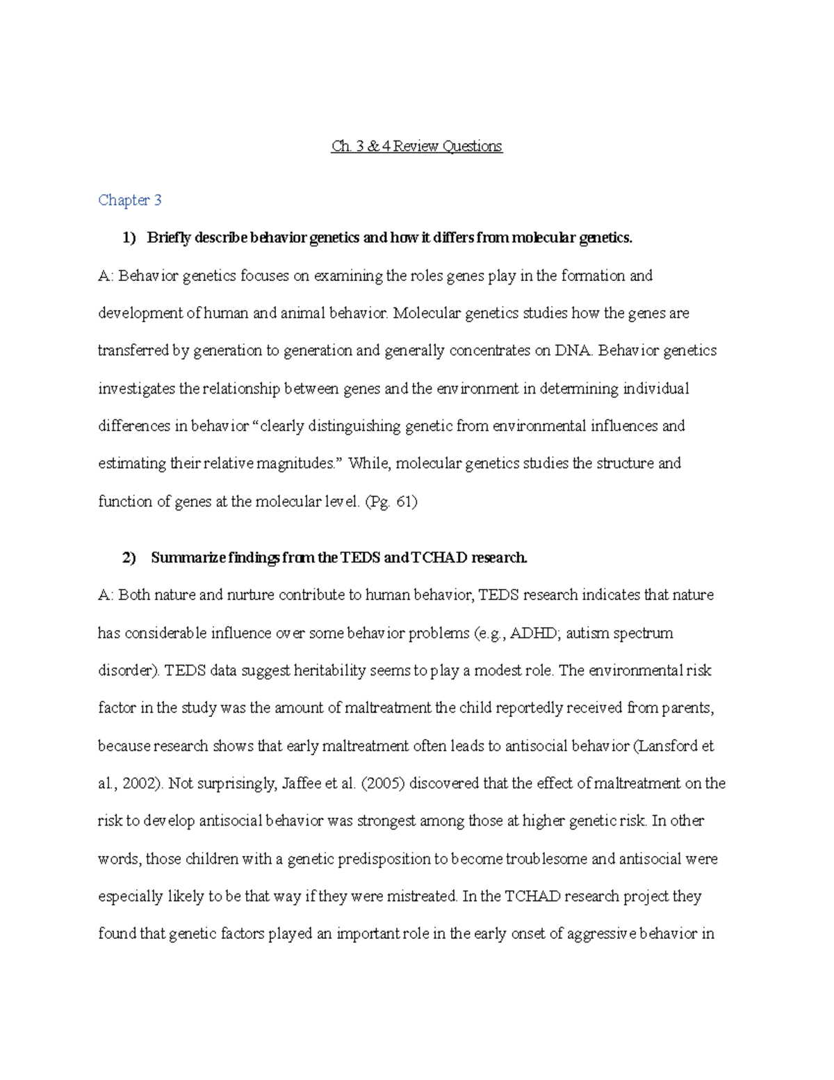Human Behavior Ch 3 4 Review Ch 3 Amp 4 Review Questions Chapter 3 1 Briefly Describe Studocu